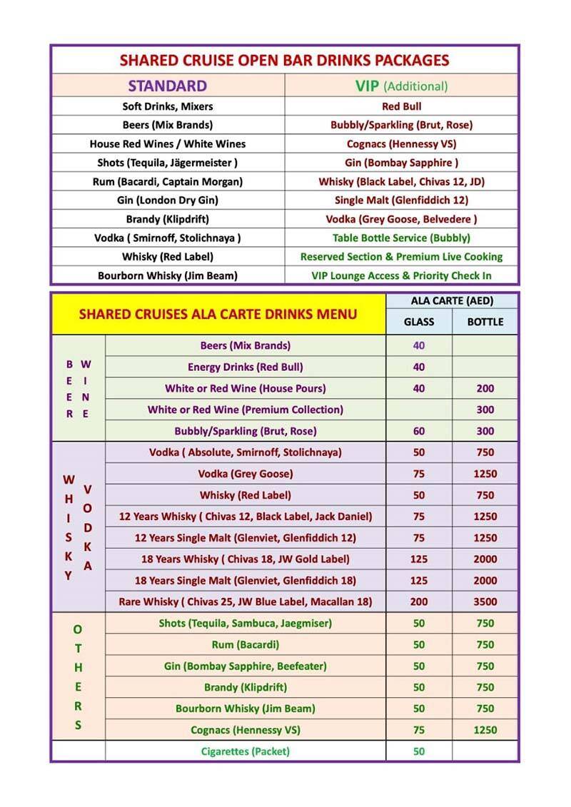 - Please Note the dinner cruise may operate in Lotus or Desert Rose depending on the availability.